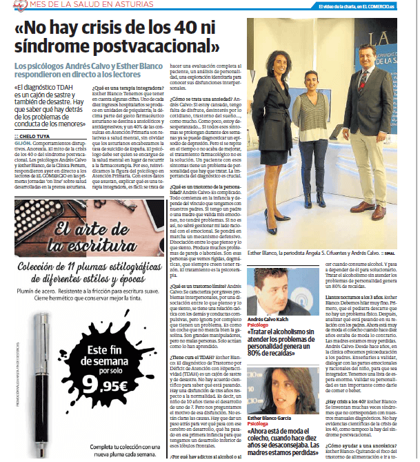 Con motivo del Mes de la Salud en Asturias, Andrés Calvo y Esther Blanco, directores de la Clínica Persum en Oviedo, son entrevistados por el periódico El Comercio en su edición impresa.